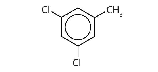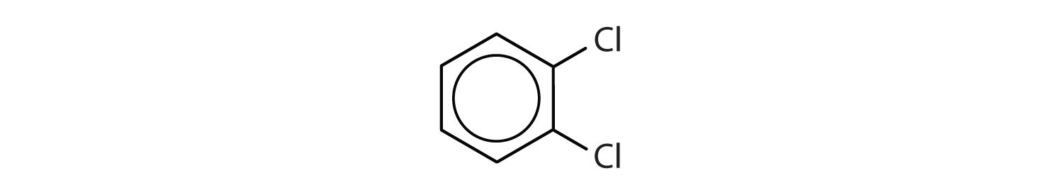 - A benzol gyűrű két klór atomok (diklór) az első, illetve a második pozíció. A vegyület o-diklór-benzol vagy 1,2-diklór-benzol.