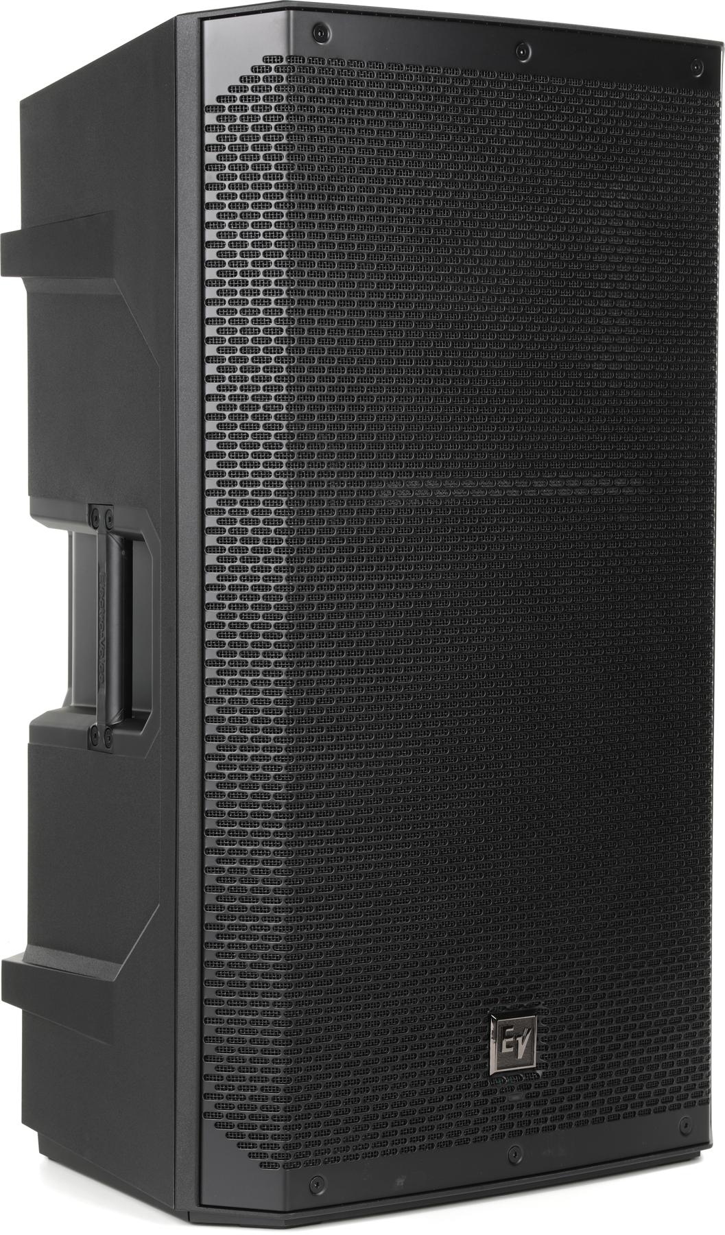 suponha que tem o dinheiro para começar a obter um sistema de PA decente. Nesse caso, este tradicional Wedge monitor também funcionará muito bem como um amplificador de tambor. The Electro-Voice features a 2-way powered speaker with a 15 ” woofer and high-performance tweeter., Amplificação classe D